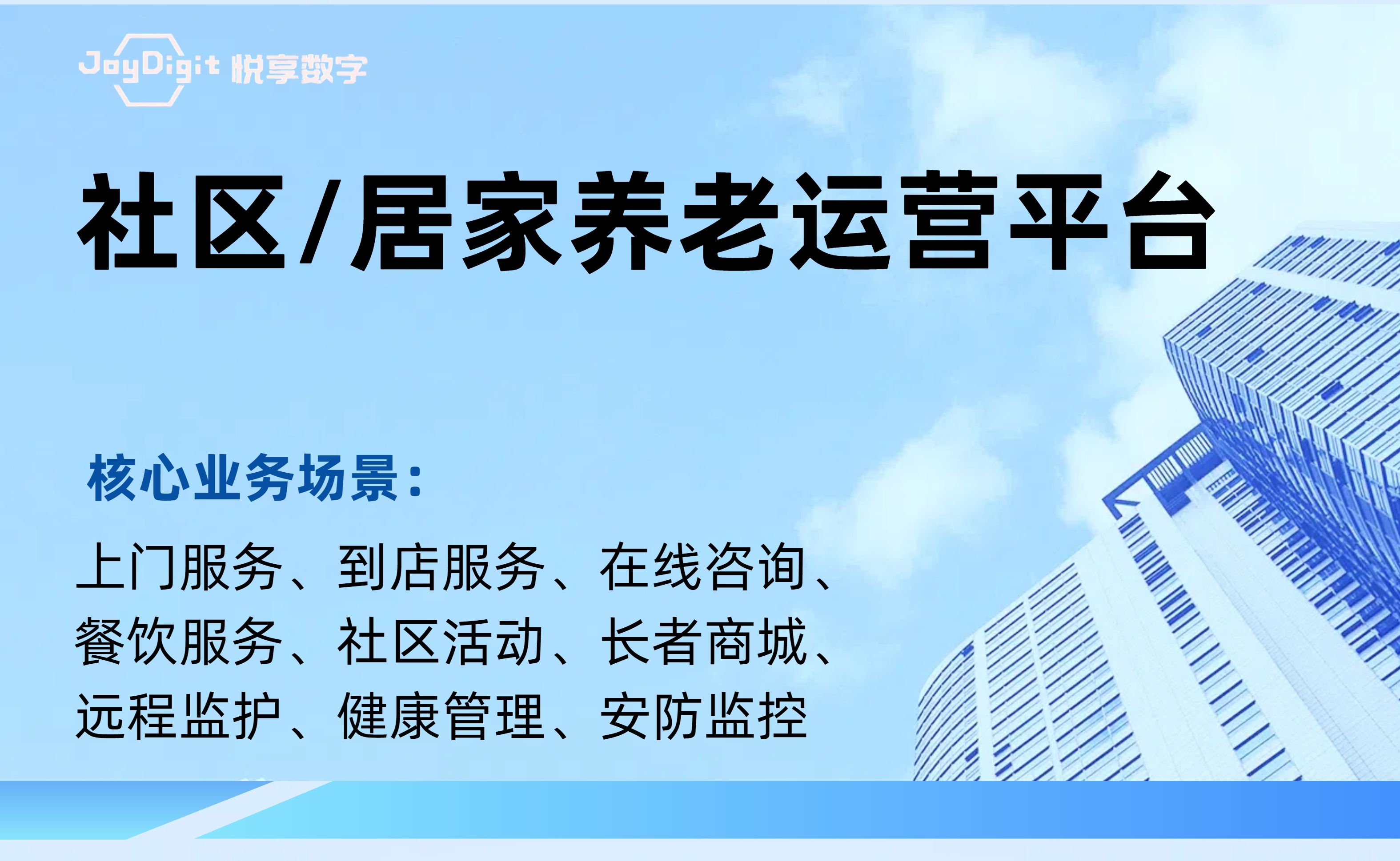 北京悅享數字科技有限公司(JoyDigit?,簡稱悅享數字?)作為養老行業數字化轉型的引領者,以“數字驅動健康?,智慧賦能養老?”為愿景,以iSpeed作為養老行業數字化轉型的標準,通過融合大數據、人工智能、物聯網、區塊鏈和移動互聯等創(chuàng)新技術,打造了領先的數字化養老解決方案-悅享養老數字化平臺(JoyDigit NexSight Platform),端到端覆蓋了數字化渠道與銷售、業務流程標準化與智...